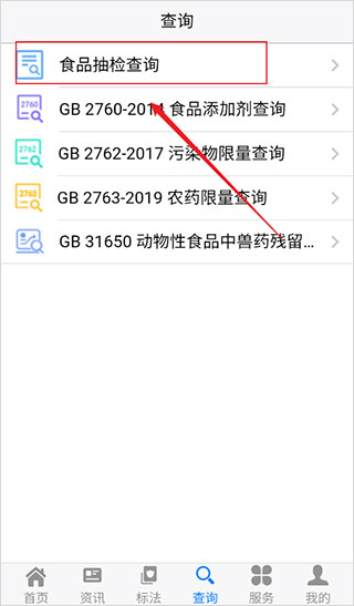 2、在查询列表中选择【食品抽检查询】,进入专项查询页面;