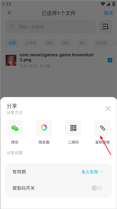 3、选择任一分享方式——微信好友、生成二维码或复制直链,快速触达接收方。