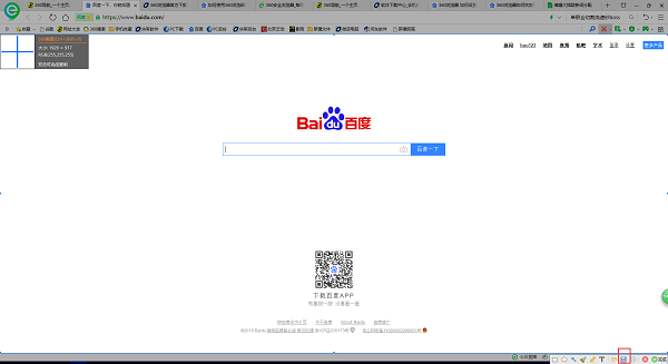 1、打开360安全浏览器,在工具栏右侧点击截图图标(如图所示);