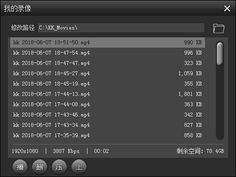 ② 视频管理:点击【我的录像】进入本地库,双击文件直接播放,或点击右上角【打开】查看保存路径;通过【修改路径】可自定义默认存储位置,便于分类归档。