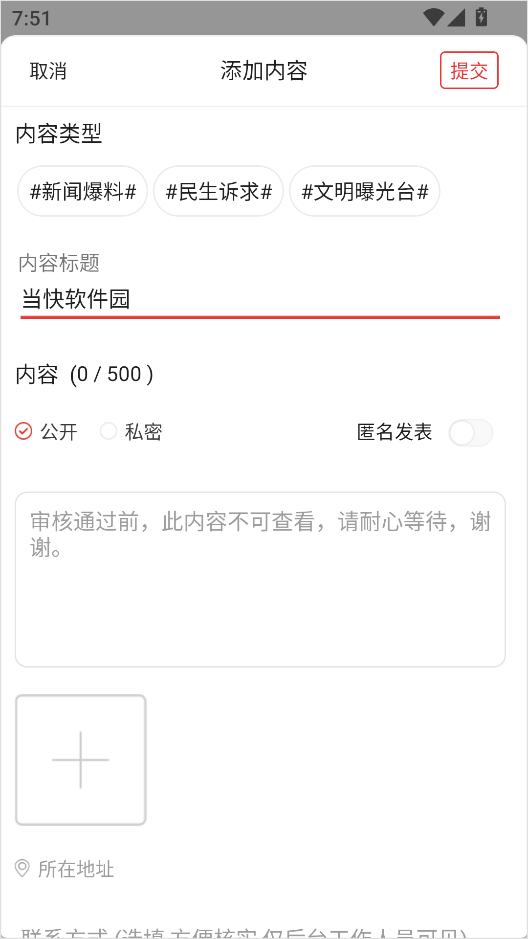 4、准确填写爆料内容,上传真实、相关、合规的图片资料,核对无误后点击【发布】,即完成爆料提交。