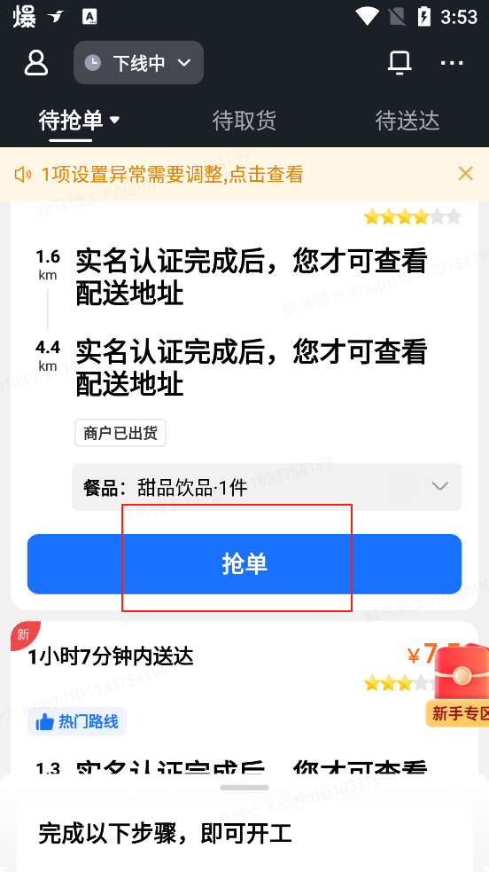 5、认证全部通过后,进入首页即可实时刷新、自主抢单