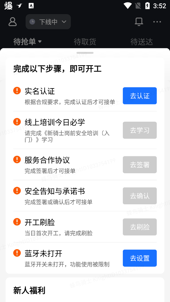 4、依次完成实名认证、线上必修培训、签署服务协议、阅读安全告知书及开工刷脸核验