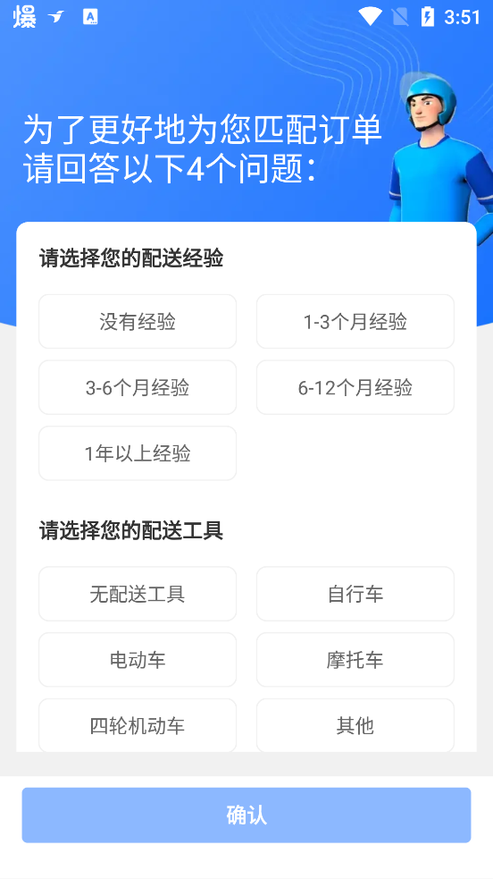 3、完成4道基础信息问答,助力系统精准匹配订单