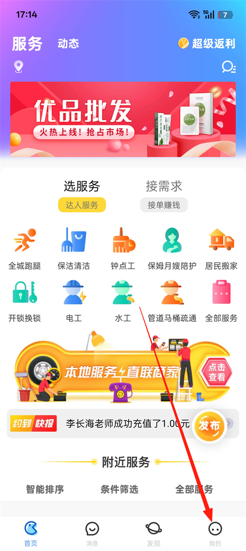 1、平台整合健身、占卜、美容、家教、法律咨询等100+类生活服务,用户发布需求后,附近服务者实时接单。
