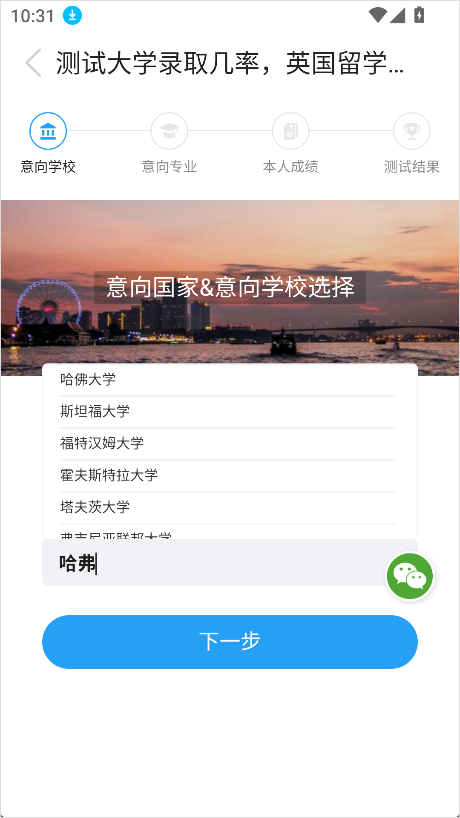 - 输入意向留学国家及目标学校名称。