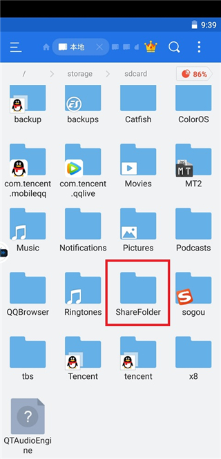 第三步:进入路径:内部存储 → ShareFolder。此文件夹与真机互通,将需导出的文件移入其中即可。