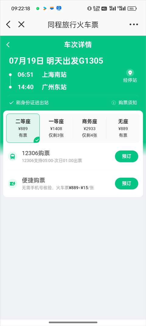 1. 从查询结果中选择合适的车次,进入订单确认页面。