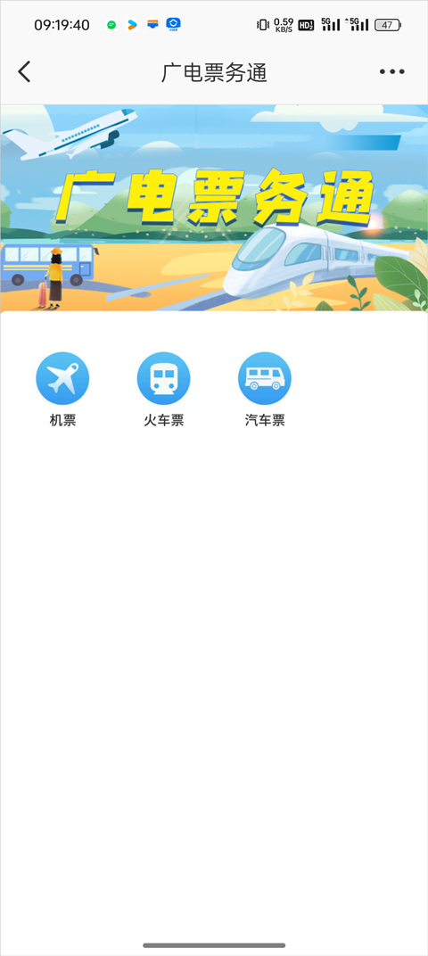 1. 在票务通界面,选择【火车票】选项。