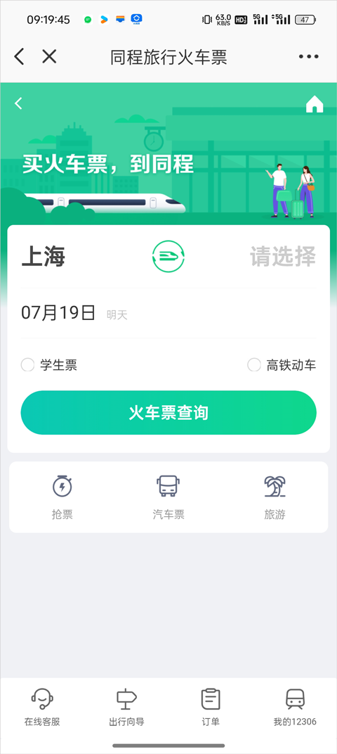 1. 输入出发地、目的地及出行日期,点击【查询】按钮。