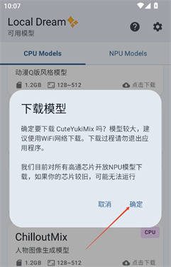 2. 点击所选模型旁的“确定”按钮,系统将自动下载对应模型文件。