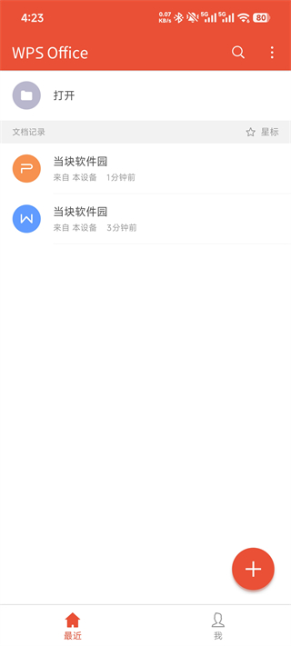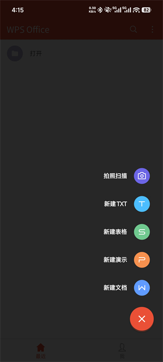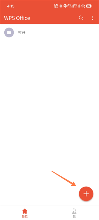 1、启动WPS安卓政企版App,点击主界面右下角红色“+”号按钮。