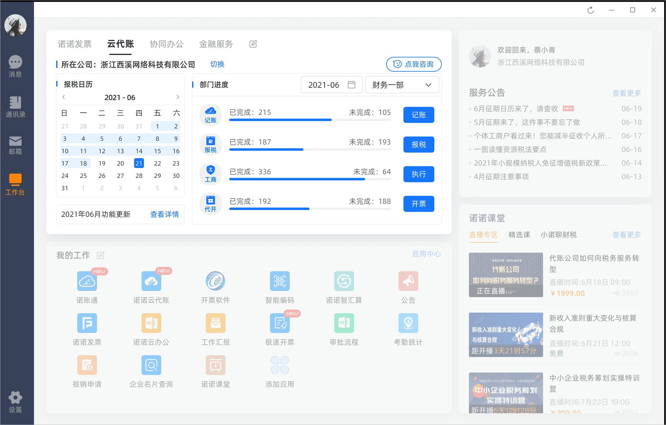 为保障企业沟通效率与信息安全,诺言打造了专属于财税办公环境的即时通讯功能: