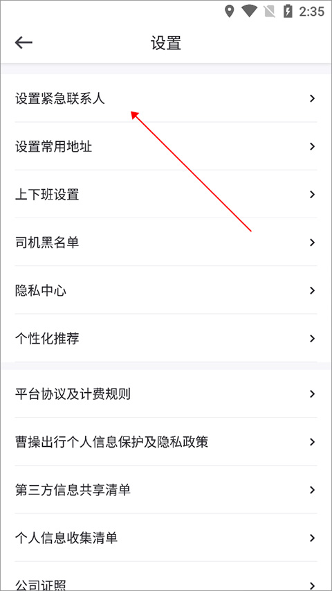 - 在设置页面中点击【设置紧急联系人】。