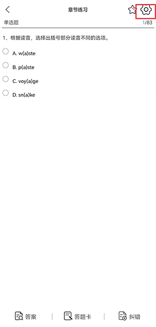 - 在答题界面右上角点击“设置”图标;