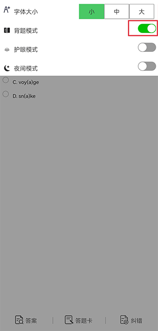 - 开启“背题模式”选项;
