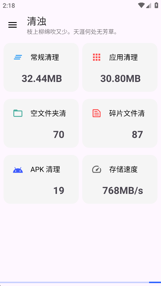 清浊App是一款专注于手机内存清理与系统优化的实用工具,集一键清理、应用通用清理、卸载残留清理、电池优化、APK清理、病毒查杀、根目录整理等多功能于一体。无论是日常使用中产生的缓存垃圾、空文件夹,还是软件卸载后遗留的无用数据,清浊App都能高效、彻底地清除。应用界面简洁清爽,全程无广告弹窗干扰,操作流畅直观,为用户带来轻盈舒适的使用体验。
