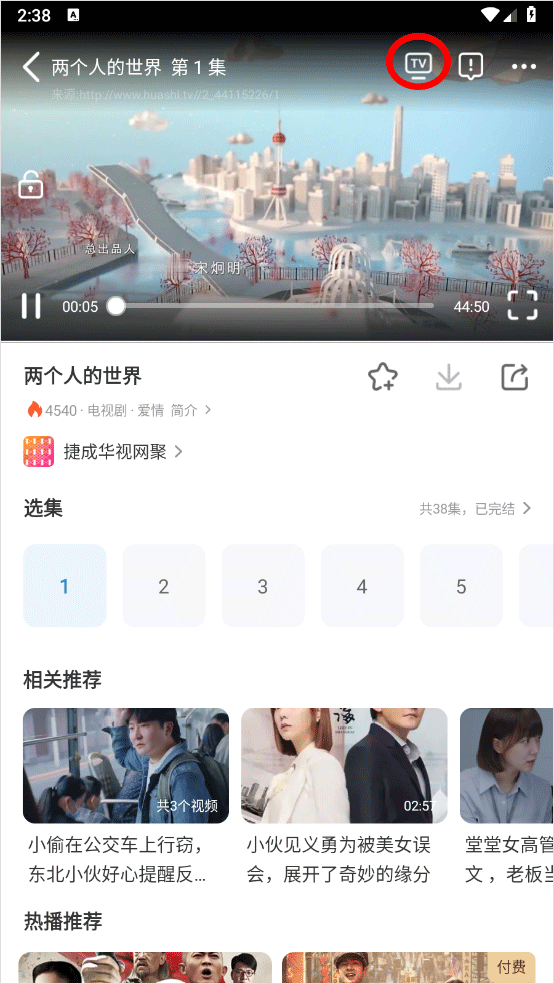 3、选择好剧集点击右上角的tv图标