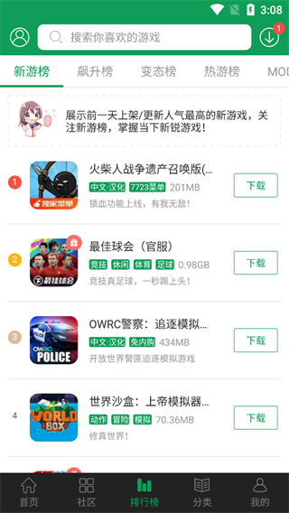 实时更新新游榜、热玩榜等多维度榜单,直观呈现当前最受欢迎的手游。玩家可依据排名快速了解流行趋势,一键下载高人气作品。