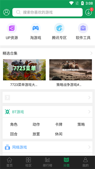 按BT游戏、网游、动作、策略等类型精细划分,便于用户精准定位兴趣领域。同时设有专题合集,推荐小众精品,拓展游戏视野。