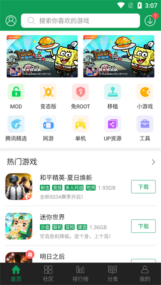首页集中展示热门推荐、游戏分类及最新上架内容。用户可快速搜索心仪游戏,浏览资讯、下载资源,并按类型或版本筛选。每日更新的精选榜单帮助玩家高效发现优质作品。
