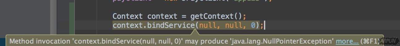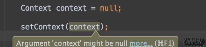 当我们对其传入一个空值的时候, 将会显示警告(但代码仍然能通过编译)