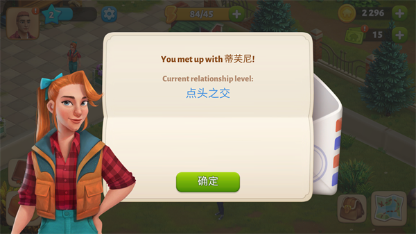左边有个凉亭,点进去就可以见面了。打开的界面有个绿色的条,点进去就可以做个小游戏就可以见面了。