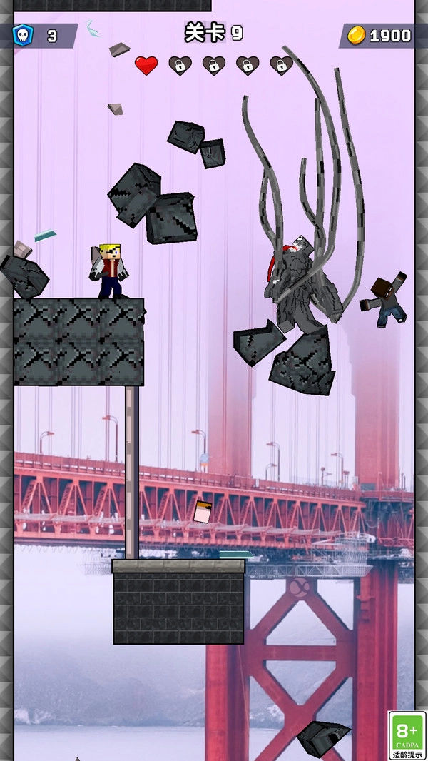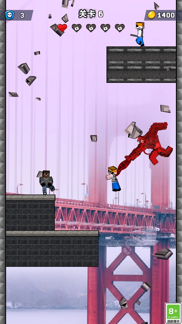 玩家需要在城市的高楼大厦间快速移动,利用绳索击败敌人。每一关都充满挑战,随着游戏进程,敌人将变得越来越强大,玩家需要灵活运用战斗技巧和战略。