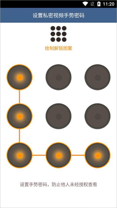 2、按提示绘制首次手势密码,并再次重复绘制完成确认;