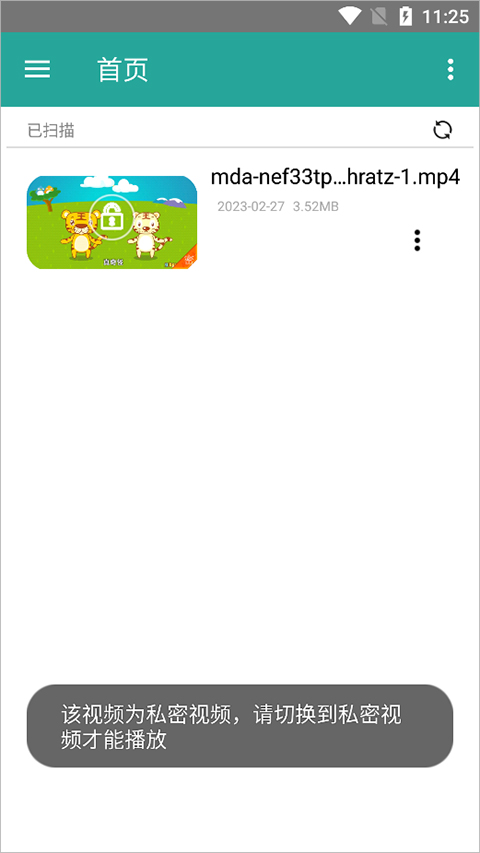4、此后该视频将从常规列表中隐藏,仅可在【私密视频】入口内,通过正确手势验证后方可访问与播放。
