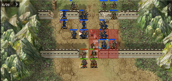 吕布登场即为高难度考验。需严控走位:保持主力与吕布距离≥5格,避免其大范围移动+先手秒杀;待曹操部队被敌军逼近后自动出击,再由刘、关、张三人围攻吕布。切记——残血刘备不可主动攻击吕布,以防被反杀。