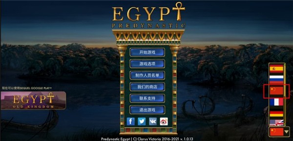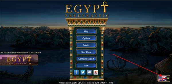 1、在本站下载安装并打开史前埃及游戏,进入游戏首页,找到右下角国旗标志。