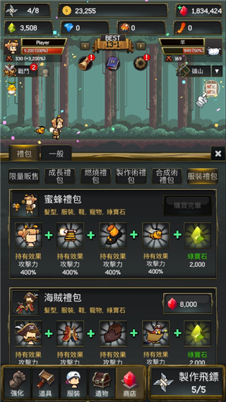 2、像素风忍者养成体系:解锁数十位风格迥异的忍者角色,搭配海量限定时装与特效武器;