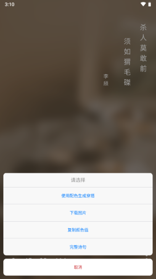 1. 进入“灵感”板块,浏览精选配色方案或古典诗句,激发设计创意;