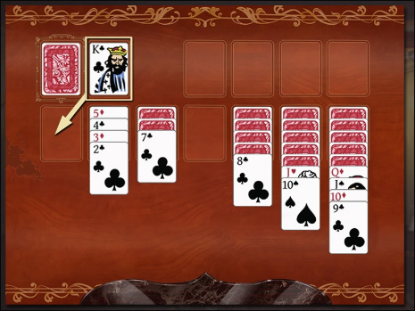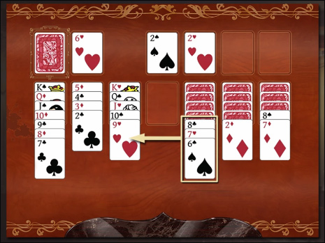 - 可将正面朝上的牌移至另一牌堆,前提是目标牌比它大且花色颜色不同。