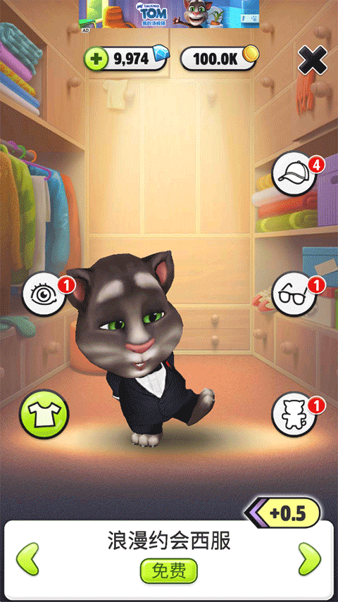 5. 高度自定义空间:从1000+种毛色、服装与家具组合中自由搭配,打造专属汤姆之家。