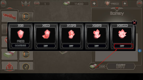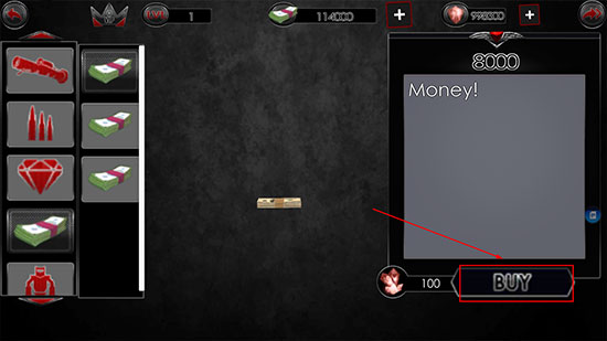 3. 找到所需金币或钻石选项,点击右上角“+”号,再点击【BUY】完成购买;