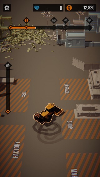 2. 注意机械设备的装载容量有限,左侧进度条显示当前废料装载量。当满载后,需驶向指定回收点(如图所示)进行废材兑换。