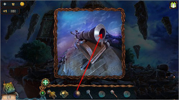 2. 在乱石堆中点击散落的炮弹和锤子,将其收入道具栏;