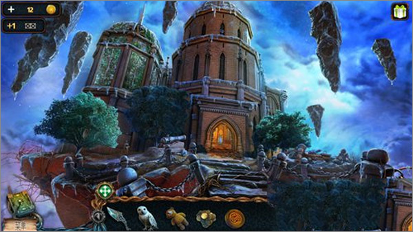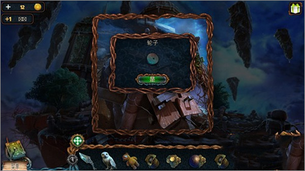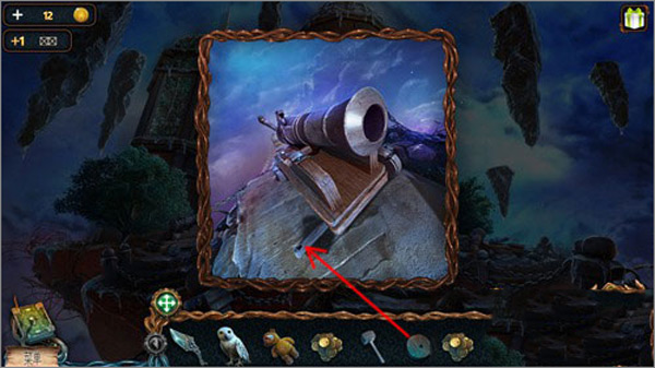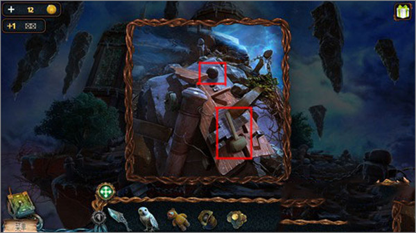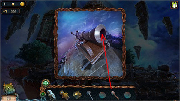 5. 点击猫头鹰,再点击右上角悬浮的石头,引导猫头鹰飞上去取下推杆;