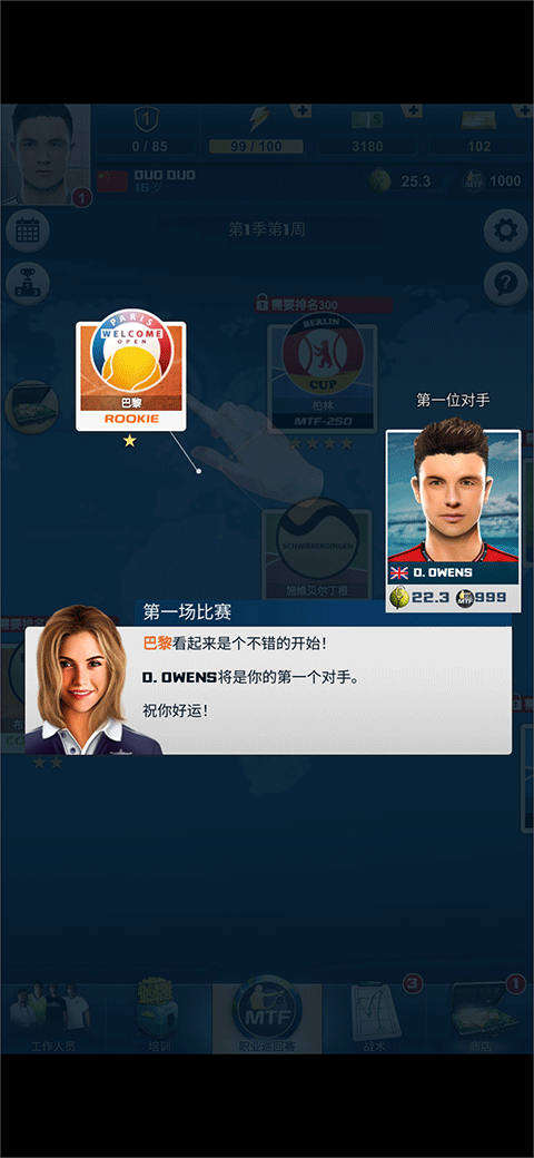 游戏上手流程清晰直观,只需六步即可开启你的网球经理之旅: