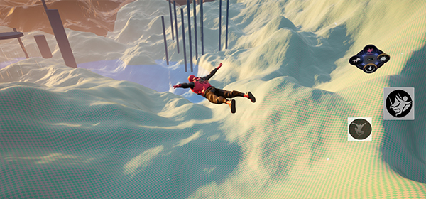 4、从平台跃下后,按住滑翔键即可展开滑翔,安全抵达下一个平台;