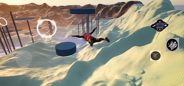 3、右下角设有三个功能按键,分别为跳跃、滑翔和变形,用于在空中调整姿态与飞行方向;