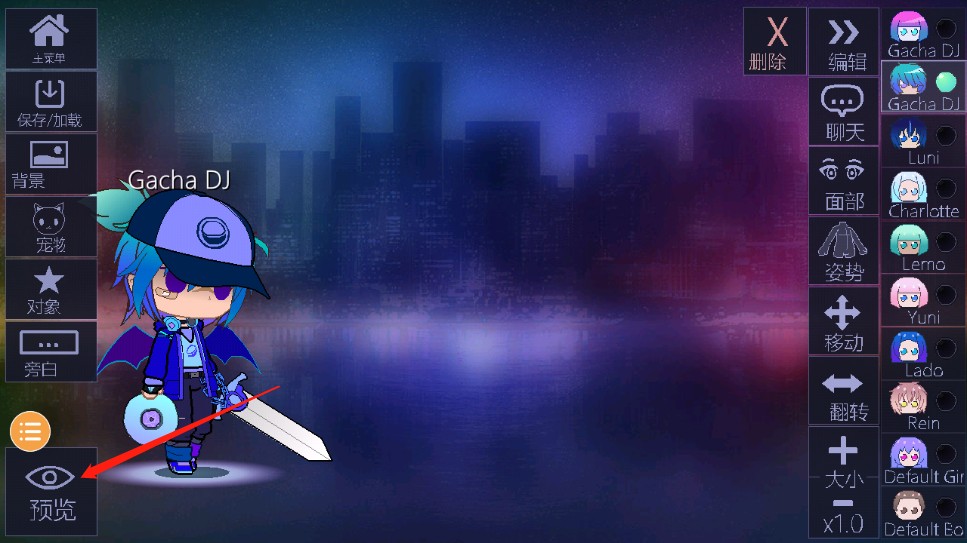 6、完成装扮后,点击左下角的【预览】按钮,即可实时查看角色的整体效果;