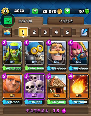 卡牌使用依赖“圣水”资源,初始上限为10滴,随时间自动恢复,后期恢复速度加快,考验资源管理能力。