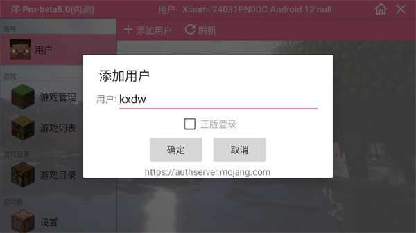 1、安装完成我的世界泰坦生物模组游戏后启动程序,首先点击界面中的“用户”选项。