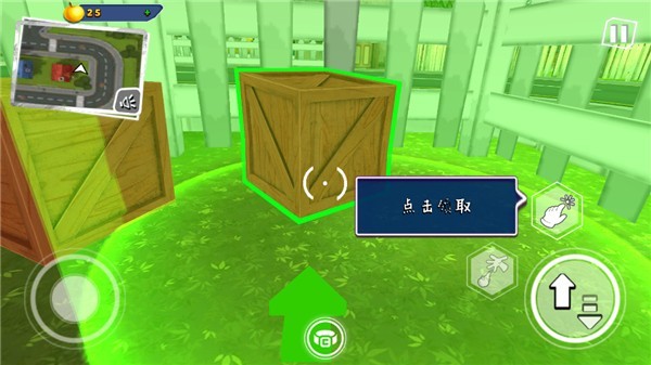 点击右下角跳跃键,借助板箱翻越障碍;
