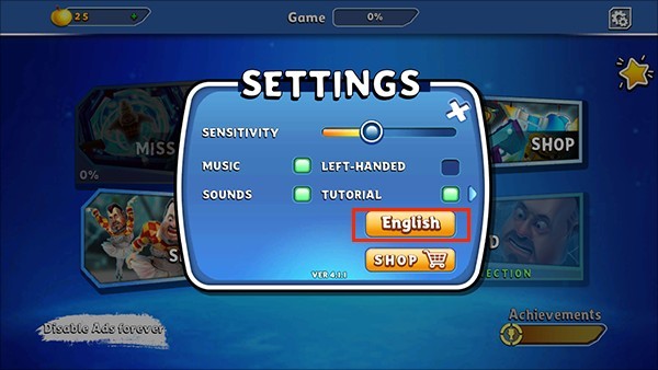 在弹出的“Settings”菜单中,找到并点击当前显示的“English”选项;