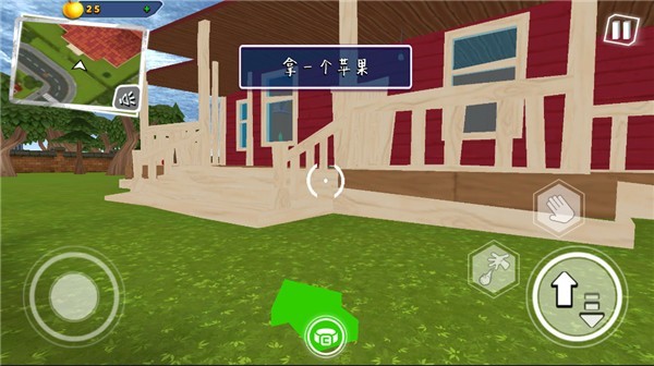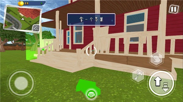 左下角虚拟摇杆控制角色移动方向,右下角按钮分别用于跳跃和使用道具;
