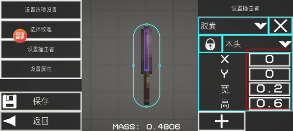 5、找到设置撞击着,对这个撞击者的属性进行调整;